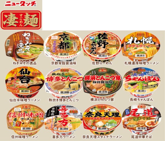 ●商品内容 :凄麺(ねぎみその逸品133g、京都背脂醤油味124g、佐野らーめん115g、札幌濃厚味噌ラーメン164g、仙台辛味噌ラーメン152g、熟炊き博多とんこつ110g、横浜とんこつ家123g、長崎ちゃんぽん121g、信州味噌ラーメン121g、喜多方ラーメン115g、奈良天理スタミナラーメン112g、尾道中華そば115g)