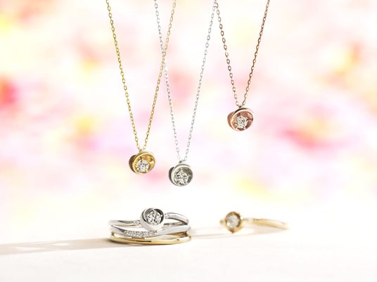 春の限定ジュエリーは立体的な花びらのフォルムと有機的なハートのフォルムをミックスした、大人も魅了するシンプルで愛らしいデザイン。センターストーンには、大小ふたつの星が映し出される “Wish upon a star(R)” ダイヤモンドが瑞々しいきらめきを放ちます。輝かしい未来に「わたし」だけの花を開花させる。そんな想いを込めお届けします。