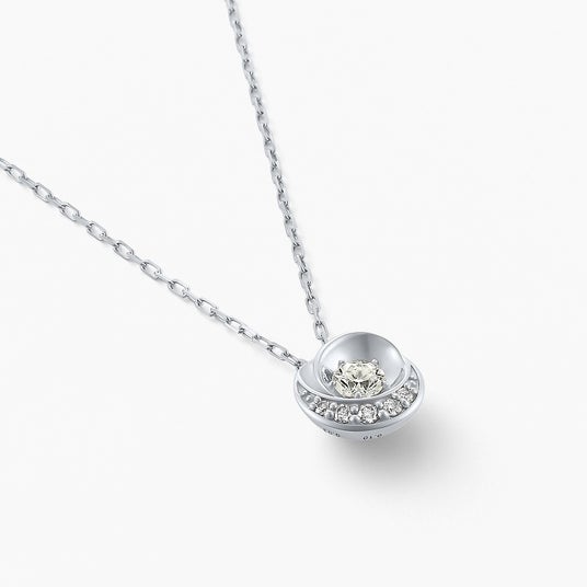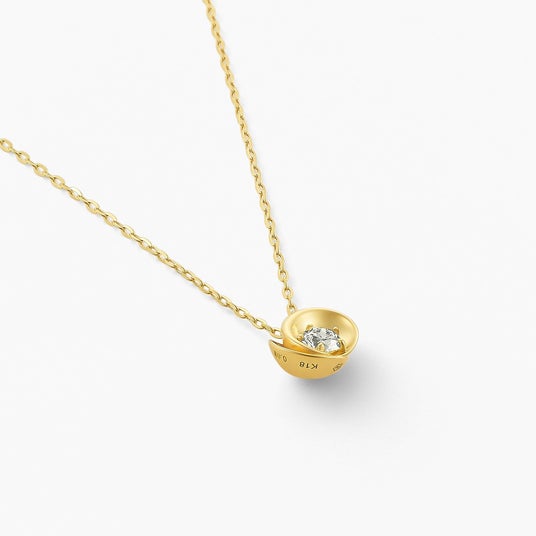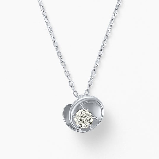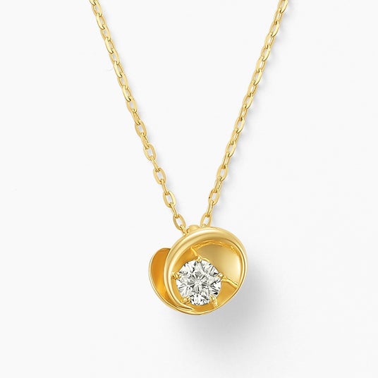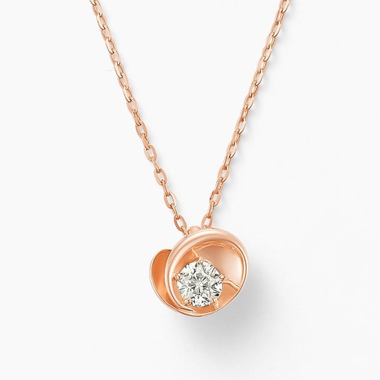 表面は柔らかな花びらに包まれた、シンプルなダイヤモンドネックレスとして、背面はぷっくりと立体感のあるハートネックレスとして、シーンにあわせリバーシブルでご使用いただけます。