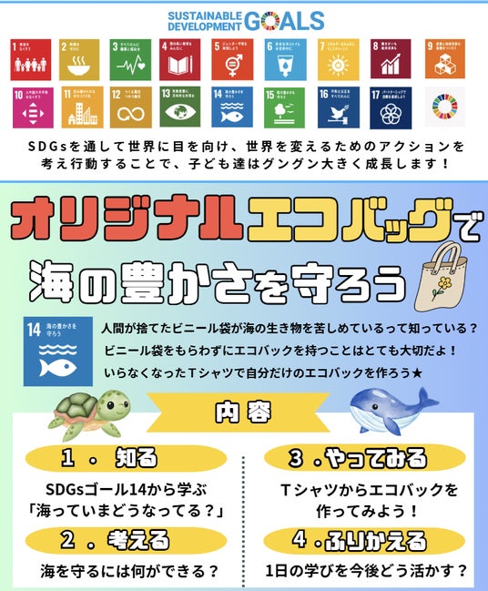 【2025年3月スタート】小学生必見!SDGsゴール14「海の豊かさを守ろう」実現のため、捨てるTシャツでエコバックをつくる1Day体験の開催が決定!