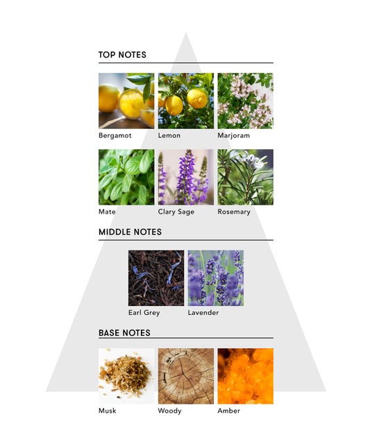 Top:Bergamot, Lemon, Marjoram, Mate,Clary Sage, Rosemary