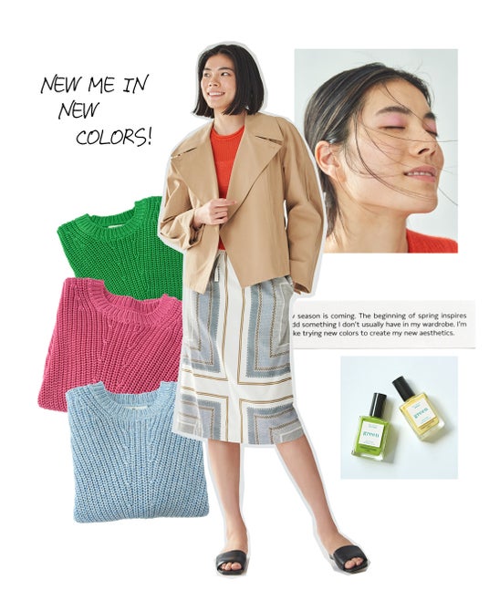 いつもとは違うカラーを選んで新しい自分に出会う。いつもとは違うカラーで新しい自分に。新しい季節のはじまり。ワードローブにいつもとは違うものを加えたくなる春がはじまる。新しいカラーを取り入れて、世界を広げてみたい。