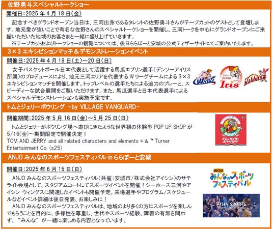 - 三井ショッピングパーク ららぽーと安城が2025年4月18日(金)にグランドオープン。