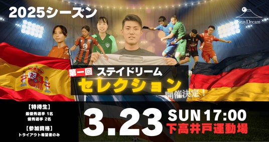 ステイドリームグループ株式会社(本社:東京都新宿区西新宿、代表取締役:宮川類)は、若手サッカー選手の海外挑戦を支援する「第一回 ステイドリーム セレクション2025」を2025年3月23日(日)に開催することをお知らせいたします。