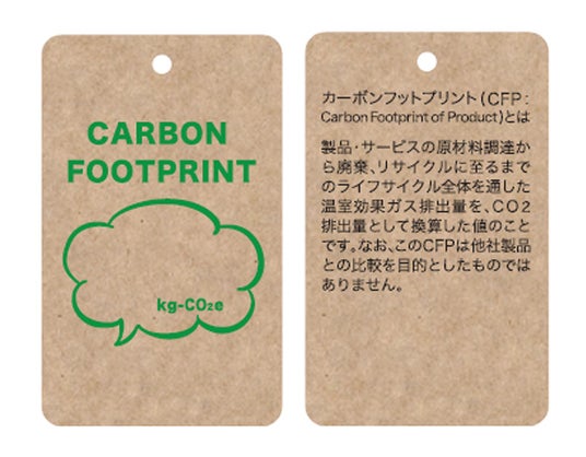 カーボンフットプリントとは、Carbon Footprint of Products の頭文字で「CFP」と表され、商品の原材料調達から生産、流通・販売、使用、廃棄・リサイクルに至るまでの各段階で排出される温室効果ガスの量をCO2に換算したものです。