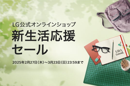 LGエレクトロニクス・ジャパン株式会社(代表取締役:孫 成周(ソン・ソンジュウ)、本社:東京都中央区)は、LG公式オンラインショップにて、本日2025年2月27日(木)から3月23日(日)23:59まで『新生活応援セール』を開催いたします。