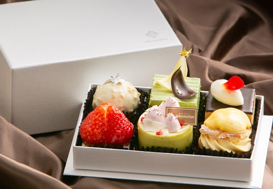 白いボックスに収められた美しいスイーツは、ご自分へのご褒美にはもちろん、大切な方への贈り物にも最適です。