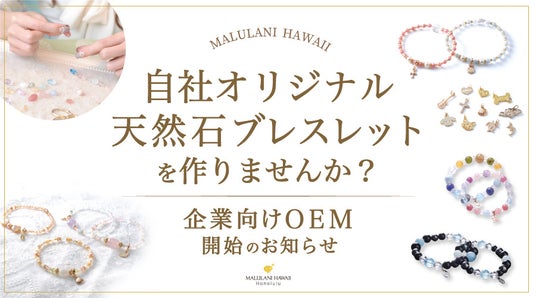 ハワイ発祥の天然石アクセサリーブランド「マルラニハワイ」では、天然石ブレスレットをオリジナルで受託製造するサービスを開始いたしました。