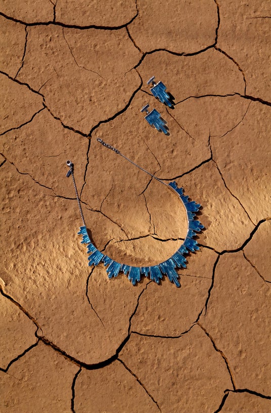 ネックレスGM ペルセポリスブルー 316,800円、ピアス ペルセポリスブルー 57,200円(クリスタルガラス、シルバー)