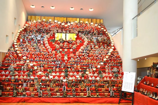須坂アートパークでは、**「三十段の雛飾り」**を展示。世界の民俗人形博物館、須坂版画美術館、歴史的建物園の3館を巡り、約2,000体の雛人形をお楽しみいただけます。