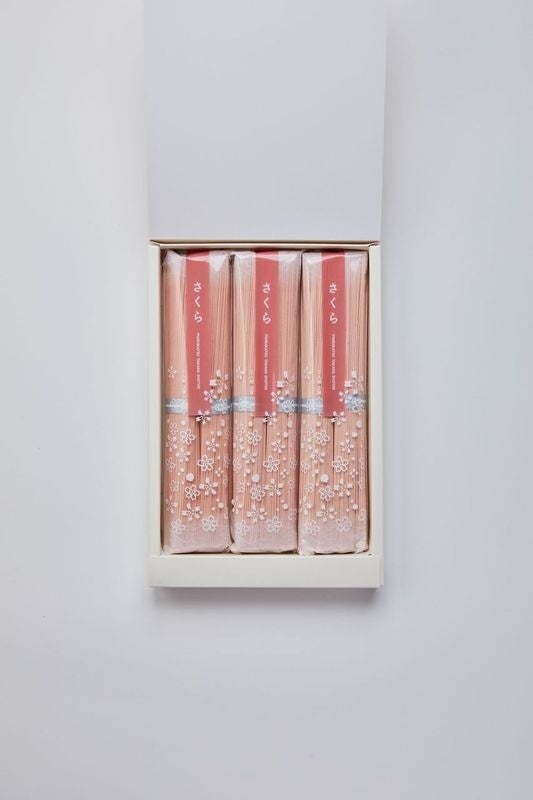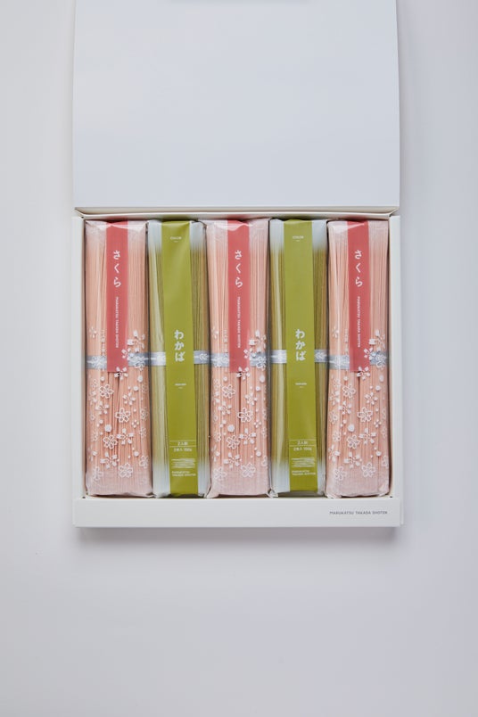 さくら香るそうめんの詰合せはなやかに桜が香る、手延べそうめんと、抹茶の粉末を練りこんだ色彩素麺を詰め合わせました。