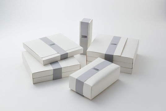 マットな質感のBOXにシックなグレーの帯を巻き、高級感のあるギフトセットです。
