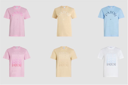 アイコニックなPatouロゴ入りのTシャツ。2025年春夏のシーズンカラーのピンク、イエロー、ブルーを使用したデザインが揃いました。国際認証が取れたオーガニックコットンを使用しています。
