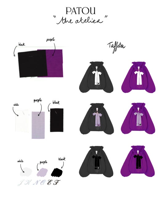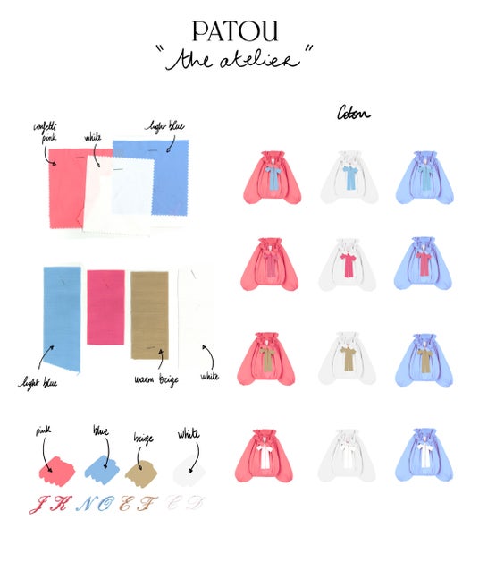 また期間中には、フレンドリーなクチュール体験「PATOU "the atelier"(パトゥ ザ アトリエ)」のサービスをお楽しみいただけます。人気のボリュームブラウスに、お好みのリボンカラーをお選びいただき、イニシャル(アルファベット)の刺繍を施します。