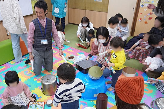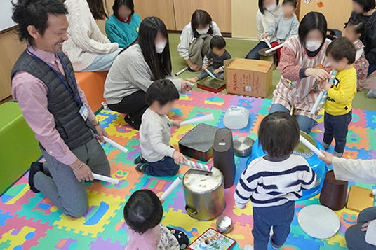 横浜市で総合ポピュラー音楽教室を運営する株式会社アダチ音研は、2025年2月24日(月・祝)、横浜市南区にある「つどいの広場 えの木」にて、「何でも太鼓でリズム遊び & ギターに合わせて一緒に歌おう」と題して、お子さまと保護者様に向けたイベントを開催しました。
