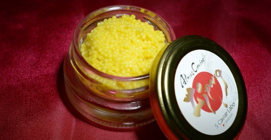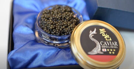 突然変異で生まれ、色素を持たない「アルビノ」のチョウザメからしかとれない金のキャビア。金のキャビアは、黒いキャビアよりも甘みが強く、クリーミーな味わいが特徴です。この金色のキャビアは、相場としては通常の黒いキャビアの15倍以上の価格で取引され、世界でも1キロあたり600万円以上の価値があるとされています。長年にわたる研究の結果、国内自家養殖としては初となる生産に成功しました。