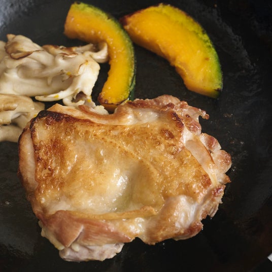 チキンソテーは、厚いところと薄いところを両方楽しむ