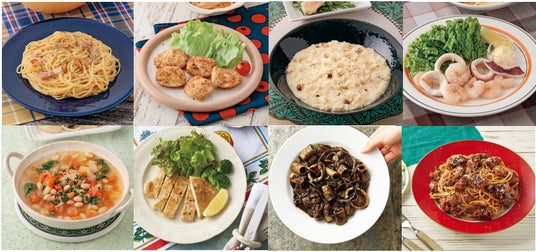 バランス400『お豆と野菜の具だくさんミネストローネ』、バリエーションコース『ミラノ風カツレツ』、バリエーションコース『リガトーニのイカスミパスタ』、クイックダイニングコース『ハンバーグで!本格ボロネーゼ風パスタ』