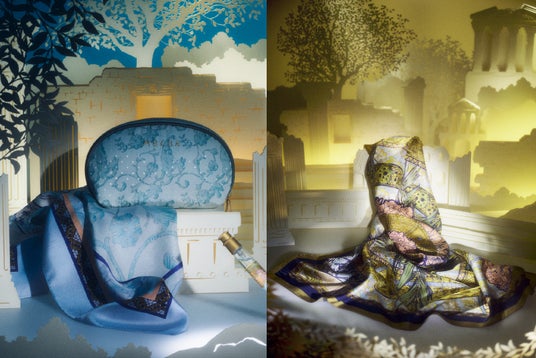 シルク素材のスカーフは、ジスモンダのドレスに描かれている柄を総柄で表現したやわらかい印象のピンク、額縁のような装飾の中にジスモンダを大胆にデザインしたさわやかなブルー、アートの要素を総柄に落とし込むことで様々な印象を楽しめる高級感のあるゴールドの3色展開。身に纏うのはもちろん、バッグに巻いてコーディネートのアクセントとしての使用もおすすめです。