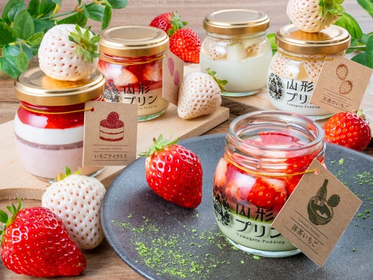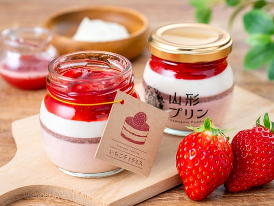 また、山形プリンではいちごフェアと題し、異なる味わいのいちごプリンをセットにした「いちごのホワイトデーセット」をギフト商品として同時発売します。良質で美味しい山形県産いちごを、存分にお楽しみいただけます。「いちごのホワイトデーセット」は、3月3日(月)よりオンラインにて期間限定で販売いたします。