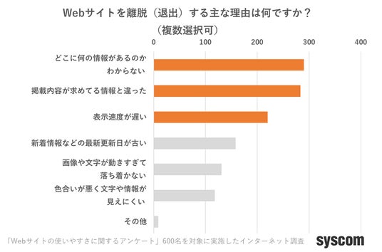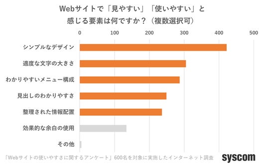 デジタルマーケティング支援を行う株式会社シスコム(本社:東京都中央区 代表取締役:小澤義幸、以下「シスコム」)は、Webサイト利用者のニーズ把握するため、600名を対象に「Webサイトの使いやすさに関するアンケート」を実施しました。その結果をお知らせします。