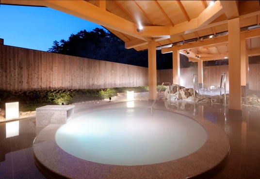 敷地内にある和風旅館 潮路亭内の湯処「常若の湯」では、パールオーロラ風呂と療養泉の2つの湯をご利用いただけます。パールオーロラ風呂は、キラキラ輝くパール調のお湯で、ミキモト コスメティックスが、潮路亭のために開発をした真珠層・真珠貝由来成分(*5)を配合したお風呂。真珠とアコヤ貝からのみ抽出される希少な真珠貝の恵み(*5)により、真珠のように輝く “真珠肌”へ導きます。また、療養泉は、疲労回復・冷え性・関節症・筋肉痛に効くと言われております。トリートメント&温浴で日々のストレスや体の緊張を解き放ち、凝りもほぐされやすくなり、心身ともにリラックスしていただけます。