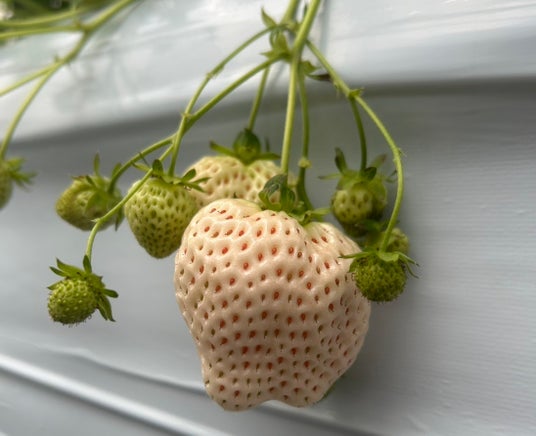 山形県東根市内に位置する平山果樹園さんで生育した白いいちご、その名も“天使のいちご”。山形県ならではの雪の色と同じ、白いいちごを栽培したいという思いから挑戦した。