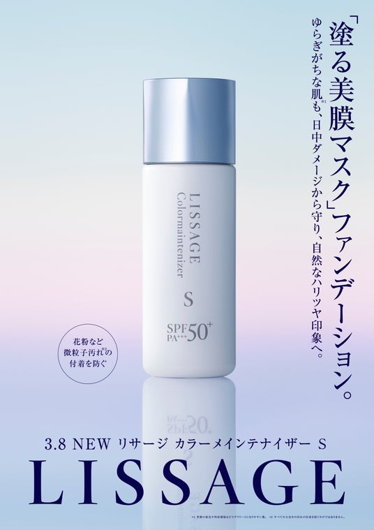 今回発売する「リサージ カラーメインテナイザー(S)」は、まるで美容液のようななめらかなヴェイルで肌を守りながら、自然なハリツヤ肌印象へと導く「塗る美膜マスク」ファンデーションです。透明感のある美しい仕上がりながら、紫外線によるダメージや、花粉・ちり・ほこり等の微粒子汚れの付着*¹から日中の肌を守ります。