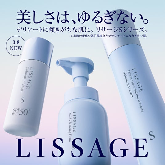 リサージが提案する「リサージSシリーズ」は、やさしい感触でゆらぎがち*な肌をいたわりながら、ハリのある美しさへと導くマイルド設計のシリーズです。季節の変わり目や環境の変化などによって、肌がデリケートに傾いてしまう。そんな時でも美しさを諦めたくないと考える方のために、肌へのやさしさとゆるぎない美しさを両立したアイテムをラインナップしています。