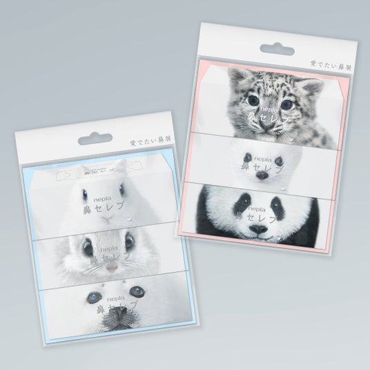 鼻セレブの歴代パッケージに起用されている動物たちの実際の鼻の質感を再現。動物たちの大切な鼻を優しく触って愛でてみよう!