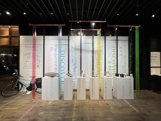 蔦屋家電が厳選する新生活におすすめのアイテムをミュージアム風に展示しています。春風を受けて揺れ動く空間で季節の移り変わりを感じながら、気になるアイテムをじっくりとご覧いただくことができます。これから始まる新しい生活を想像し、あなたの生活に寄り添うアイテムを探してみてください。