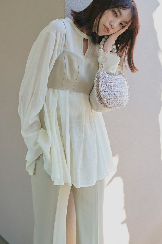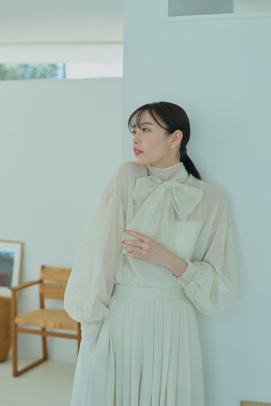 BLOUSE × INNER SET ¥13,200/ PANTS ¥13,200/ SCARF ¥2,090/ BAG ¥13,200