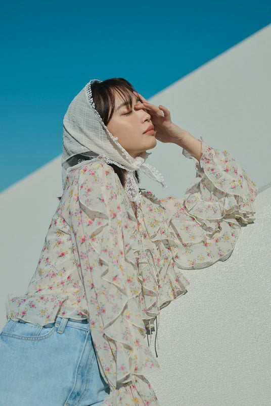 レース、フリル、小花柄。フェミニンなディティールでほんのり甘さをプラス。