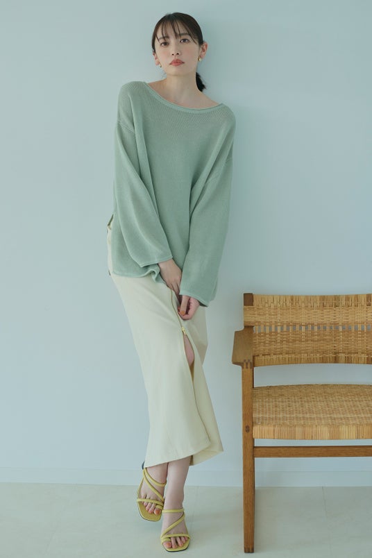 KNIT ¥9,900/ SKIRT ¥12,650/ PIERCE ¥3,850/ SHOES ¥13,750