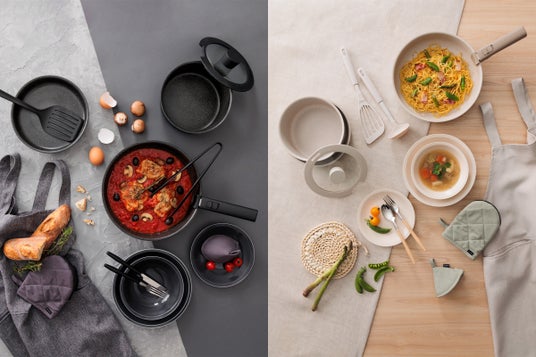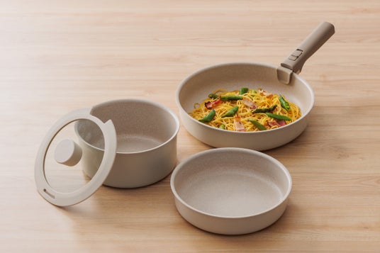 調理から片付けまで!取っ手がとれるフライパンで、調理も収納もスマートに。5点セットで2色のカラーがキッチンを彩る新提案