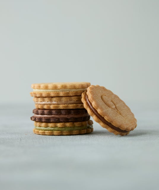 フランス屈指のショコラティエ「ヴァンサン ゲルレ」によるビスキュイ専門店から。ベースには香り高い発酵バターを使用。口溶けのよいガナッシュクリームをバランスよくあわせることで、繊細な口あたりと上品な甘さに包まれる。そんな幸せが詰まった一品です。