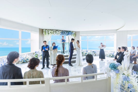 地上141mにあるオーシャンビューのチャペル、多彩な披露宴会場、上質感が溢れる空間と世界中のゲストをもてなしてきた一流のサービスで、大切なおふたりの挙式・披露宴をサポートいたします。