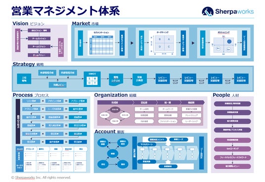 「この書籍は、シェルパワークスのこれまでの営業変革での実務経験を通じて培った『7つの型』を基にしています。このモデルは、営業組織のマネジメントを体系化するための実践的なガイドラインです。組織の成長と成功を目指す全てのビジネスマンにとって、マネジメントに携わる営業マネジャーにとって、貴重な資源となることを願っています。」