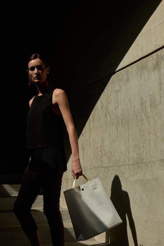 紙のように、折り曲げたり、畳んだり。シームレスで作り上げたアイテムは、よりなめらかでノーブルな表情に。ミニマルな作りから、新鮮さを生み出します。