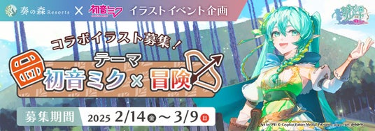 静岡県の人気複合観光施設「奏の森Resorts」にて2025年3月20日(木・祝)から2025年4月6日(日)までの18日間で開催予定の「かなでの森リゾート×初音ミク」コラボイベントにおける、ミニキャラクタービジュアルを公開。さらにイラストコンテストも開催中!奏の森Resortsは、株式会社オウルテックのグループ会社である。