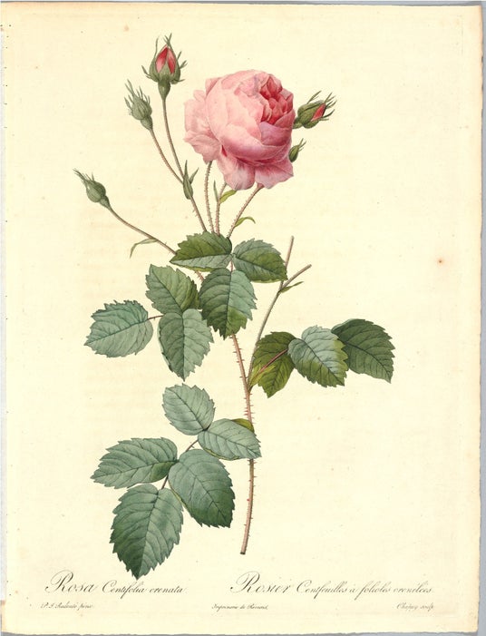 ルドゥーテ『バラ図譜』(1817-24)「ロサ・ケンティフォリア・クレナータ」