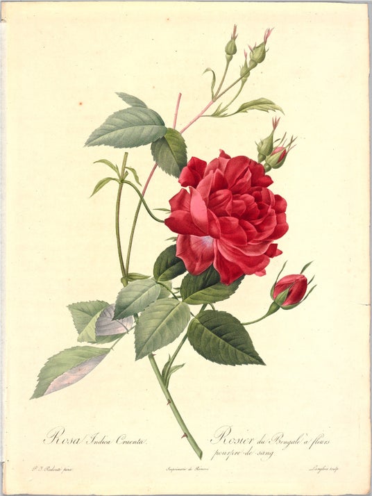 ルドゥーテ『バラ図譜』(1817-24)「ロサ・インディカ・クルエンタ」