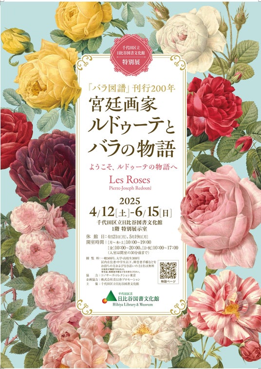 千代田区立日比谷図書文化館では、2025年4月12日(土曜日)から6月15日(日曜日)まで特別展『バラ図譜』刊行200年「宮廷画家ルドゥーテとバラの物語」を開催します。
