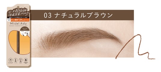 ポイントメイクの難しさを感じる箇所として、年代を問わず挙がる眉毛メイク。「ミゼルエディ パウダリーアイブロウペンシル スリム」は、眉毛メイクが苦手な方が使いこなしやすいように、0.84mmの超極細芯、パウダーをペンシル形状に固めたような芯で、ふんわり自然な仕上がりになるようにつくられています。また、スクリューブラシ付きで、描いてぼかすところまでをカバー。1本でいつもの眉毛メイクを簡単にレベルアップ。