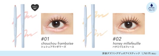 アイドルメイクのキーワード“くすみのないぷっくり涙袋”がつくれる2wayペンシル「涙袋ダズリングデュオアイスティック」。