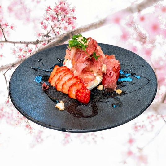 旬の苺とクリーミーなマスカルポーネ、イタリア産の生ハムを贅沢に組み合わせた一品。仕上げに蜂蜜とエキストラバージンオリーブオイルをかけ、甘酸っぱさとほどよい塩気が絶妙に調和。見た目も華やかで、春を感じさせる上品な味わいに仕上げました。