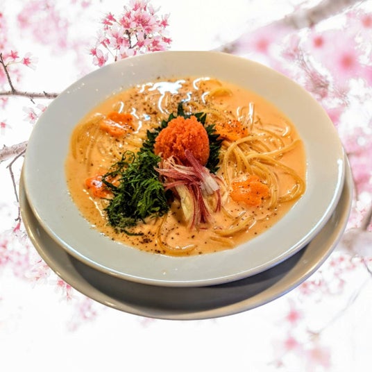 旨味たっぷりの和風出汁に、濃厚な明太子クリームを合わせた春限定のスープパスタ。大葉とフライドオニオンをトッピングし、スープとともに楽しむことで、まろやかなコクと爽やかな風味が広がります。見た目にも美しいピンク色のスープが春の訪れを感じさせる一品。
