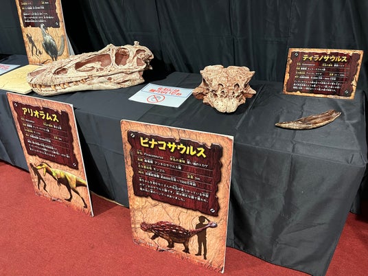 ロビーではミニ恐竜博物館を開催し、触れる化石や展示パネルで、恐竜のことを深く学べます。