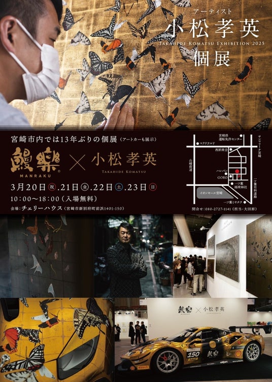 国産うなぎ養殖、加工品の小売・卸売業を手掛ける鰻楽グループ(本社:宮崎県宮崎市塩路2300、代表取締役社長:大森龍太郎)より、2024年度鰻楽アートディレクター小松孝英個展 2025年3月20(木)~3月23日(日)をご案内します。私たちは、今回の個展を通じて、新たなコミュニティの形成と交流の促進を目指しています。