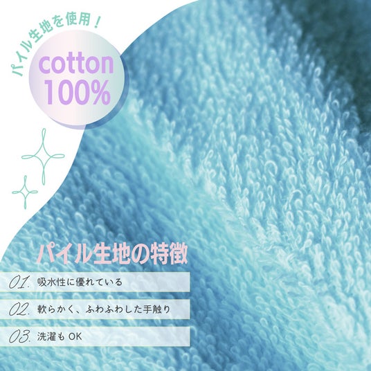 パイル生地は吸水性に優れており、汗をかくサウナにはピッタリの素材です。